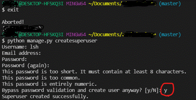 저 같은 경우 너무 짧은 패스워드를 입력해서