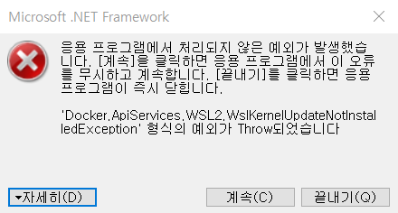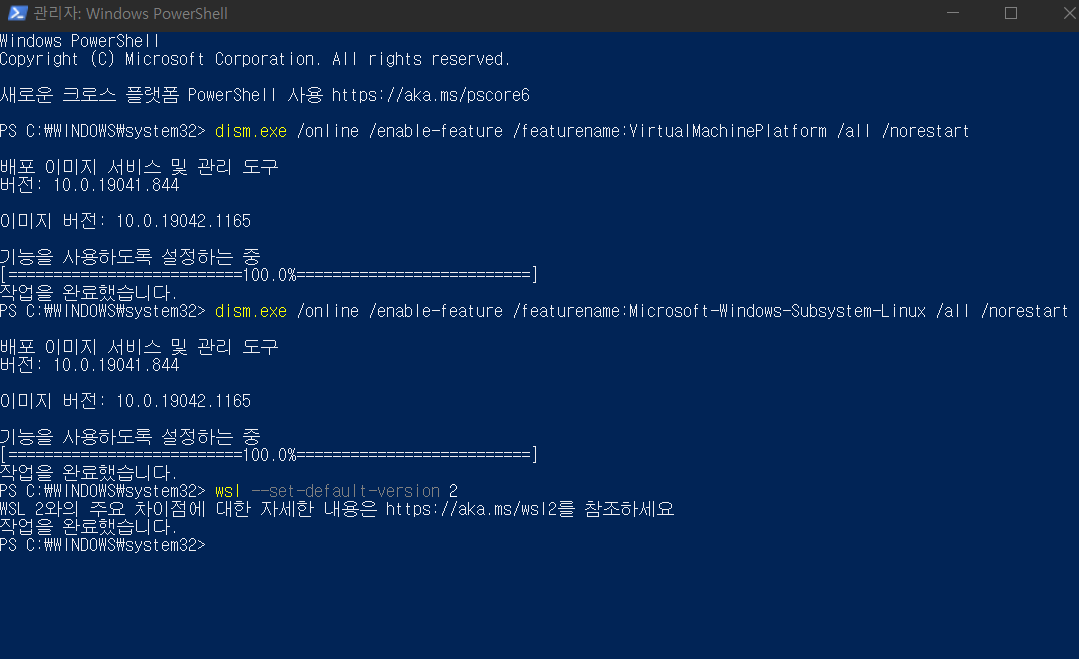 ※ 혹여나 이 과정에서 오류가 발생할 경우 windows를 10 버전 이상으로 업데이트해주시면 됩니다.