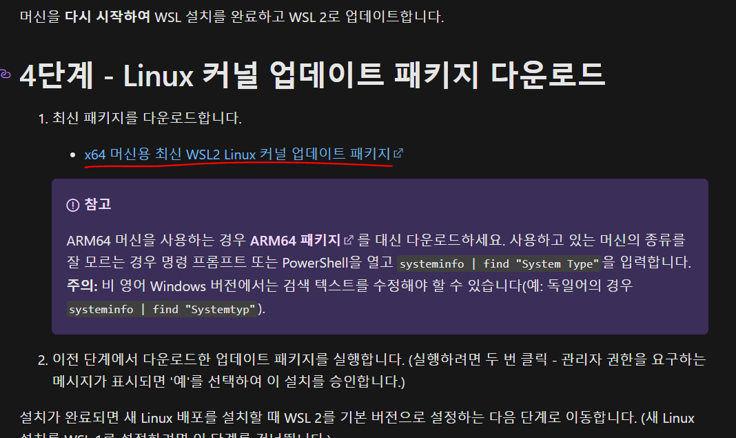 4. 띄워놨던 사이트 창에서 아래 그림과 같은 화면으로 이동 -> Linux 커널 업데이트 패키지를 다운