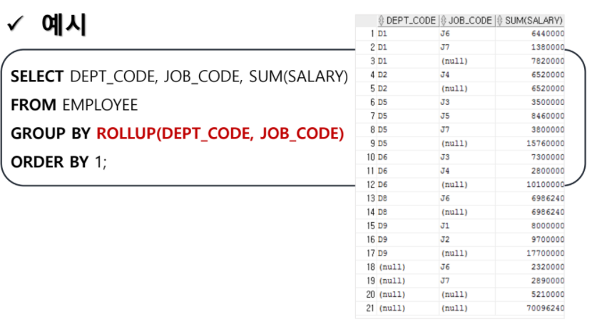 그룹 별 산출한 결과 값의 집계를 계산하는 함수인데요.