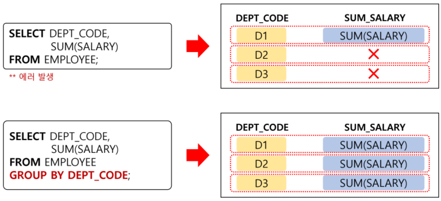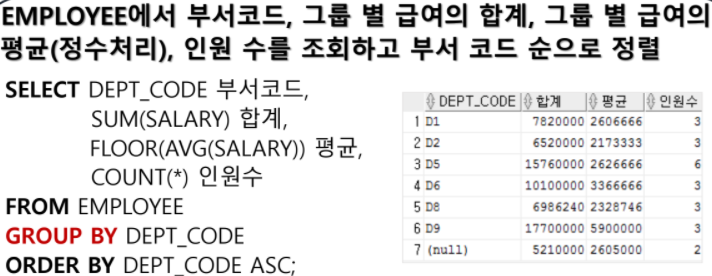 따라서, 여러 개의 결과 값을 산출하기 위해 그룹 함수가 적용될 그룹의 기준을