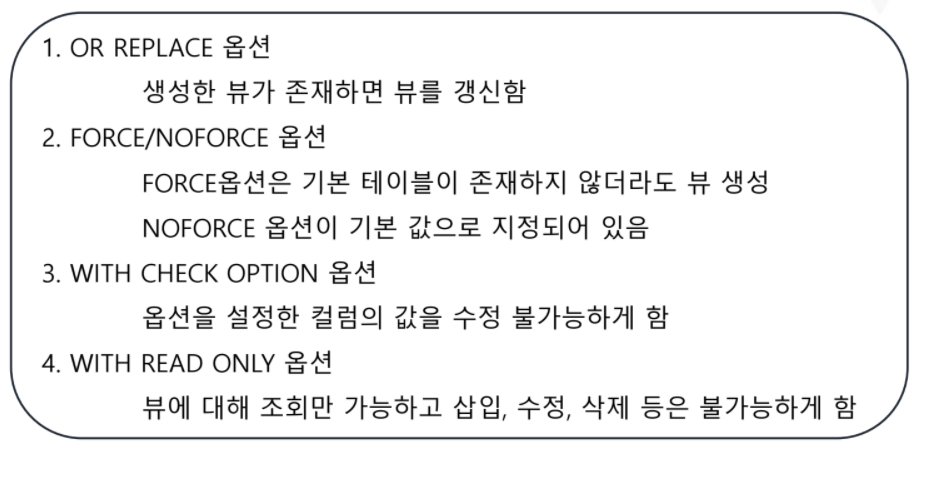 - 새로운 물리적 테이블을 생성하는 것이 아닌, 논리적 가상의 테이블을 생성하기에
