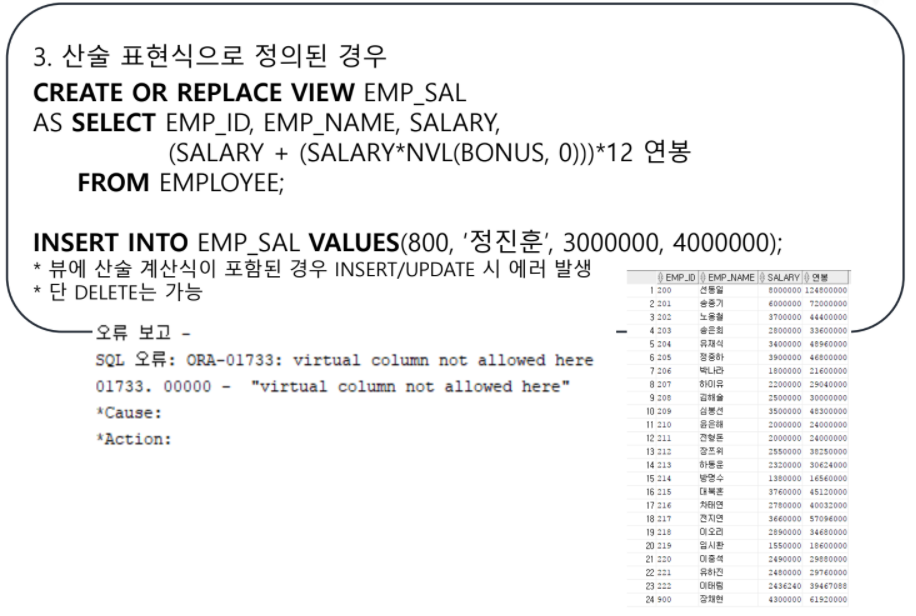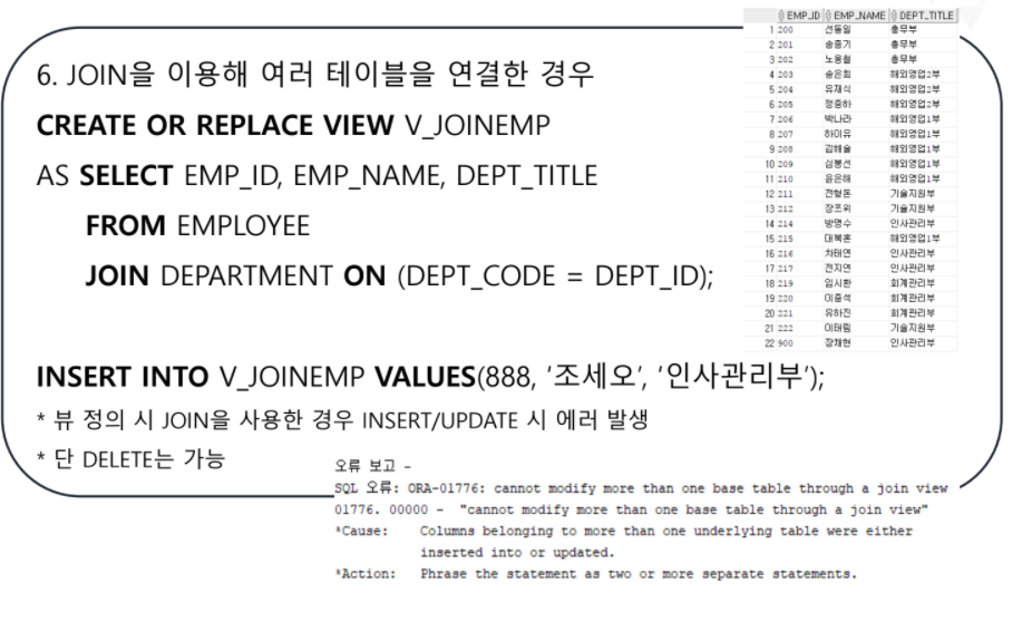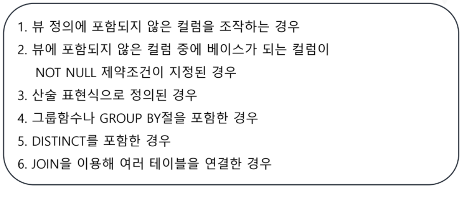 하지만 VIEW는 제약조건들을 어기면 함부로 조작할 수 없는데요.