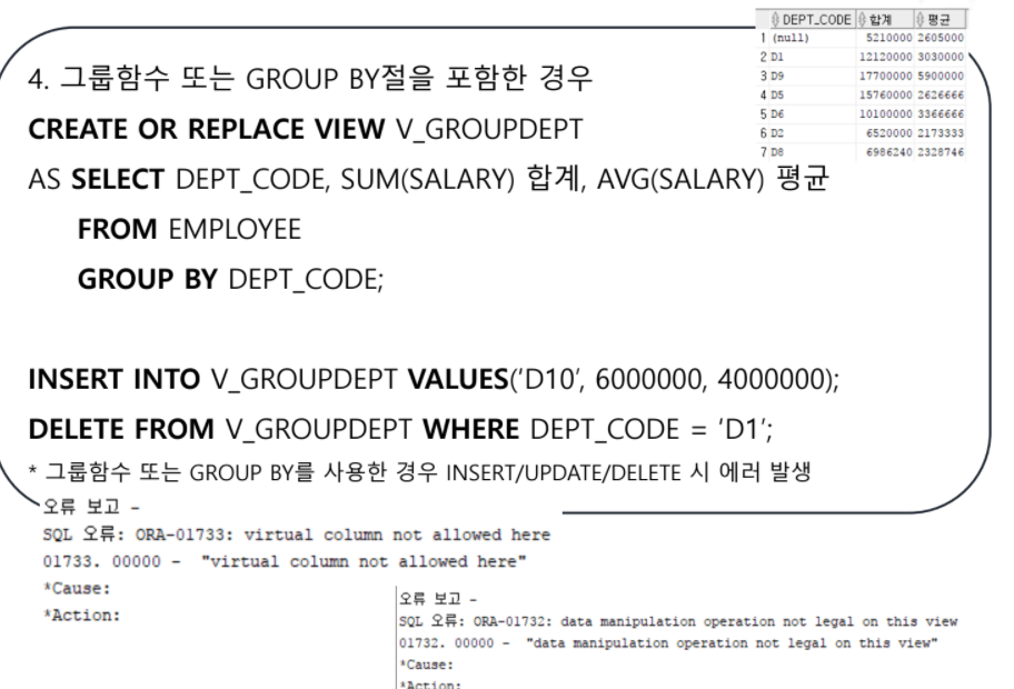 DML로 VIEW를 조작할 수 없게 됩니다.