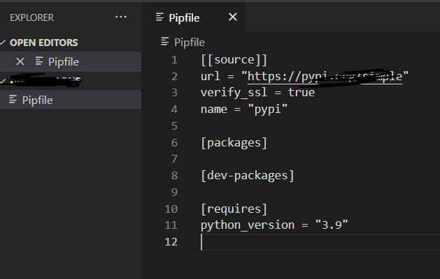 잘 생성된 pipfile을 확인할 수 있습니다.