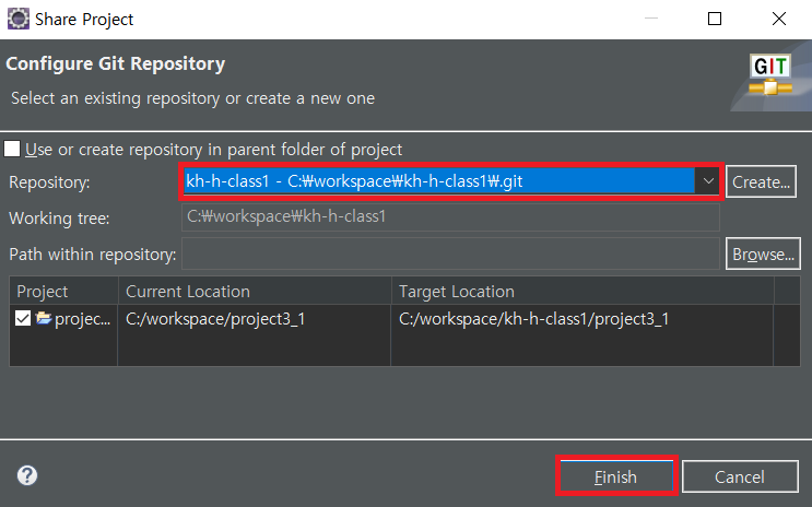 연동하고자 하는 Git Repositories안에 있는 Working Tree 에서