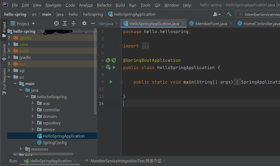"인텔리제이를 실행 시 프로젝트가 바로 떠요~"
