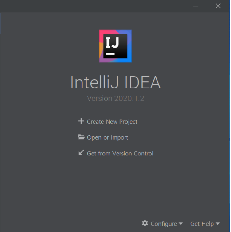 인텔리제이를 실행하면 초기화면이 뜨지 않고 위와 같이 프로젝트 창이 바로 뜬다.