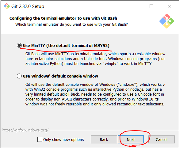 Terminal 창 선택인데 git에서 제공하는 MinTTY를 사용해줍시다.