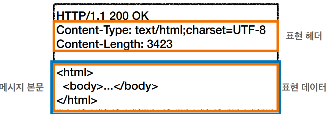 표현은 요청이나 응답에서 전달할 실제 데이터이고,