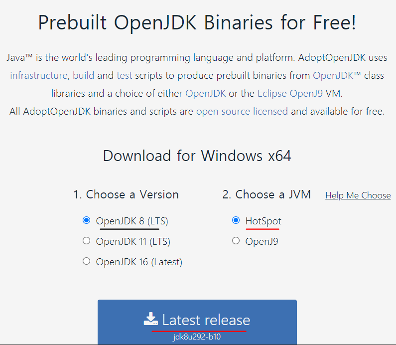 그래서 AdoptOpenJdk에서 다운 받아봅시다.