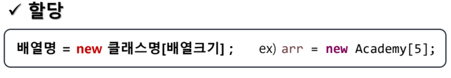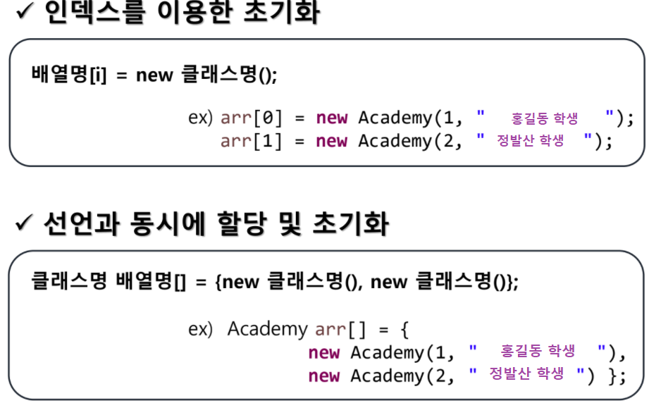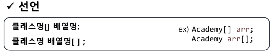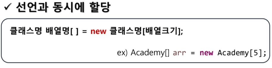 배열의 자료형을 클래스명(사용자 정의 자료형)으로 지정하여 활용됩니다.