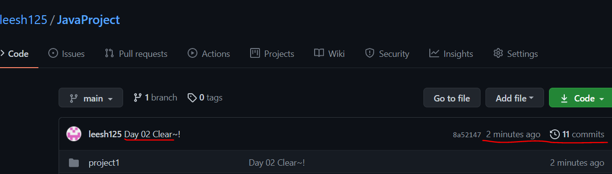 작성 및 수정된 파일을 commit(저장)하고 Push(업로드) 해봅시다.