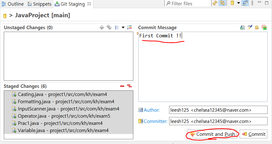 그런 다음 Commit and Push 를 눌러줍니다.