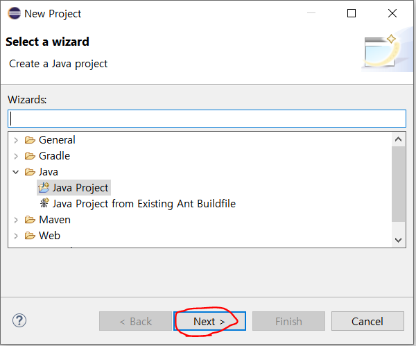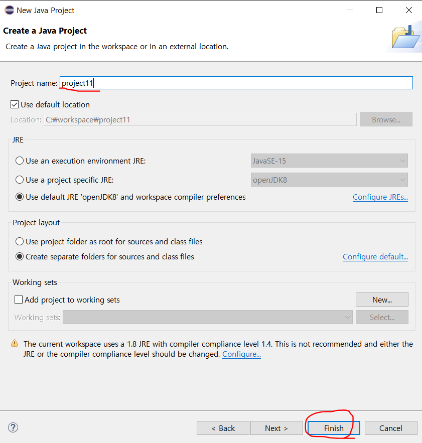 프로젝트 이름을 적고 Finish 를 눌러줍니다.