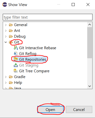 Git > Git Repositories 를 선택하고, Open 해줍니다.