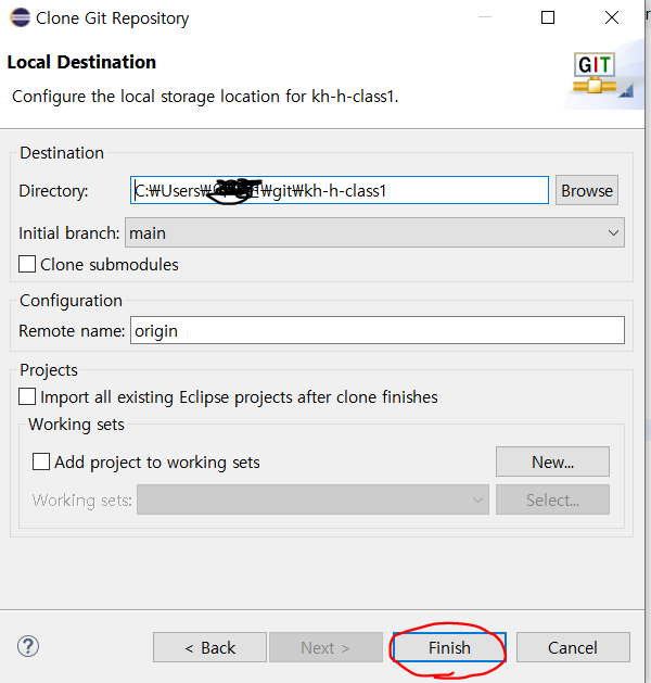 그럼 eclipse에서 불러온 Git Repository에