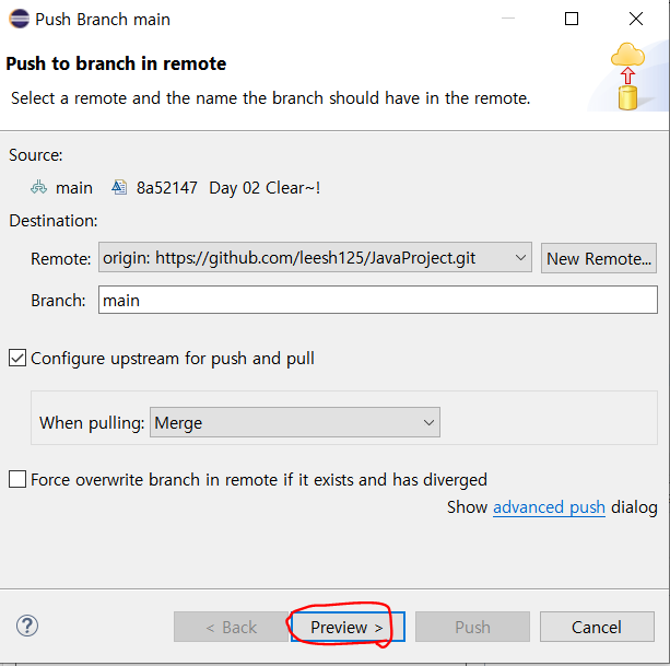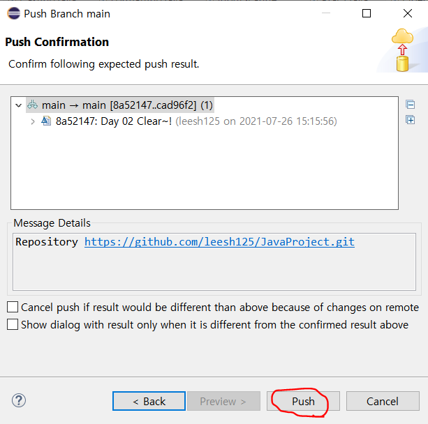 Push 클릭을 하면...