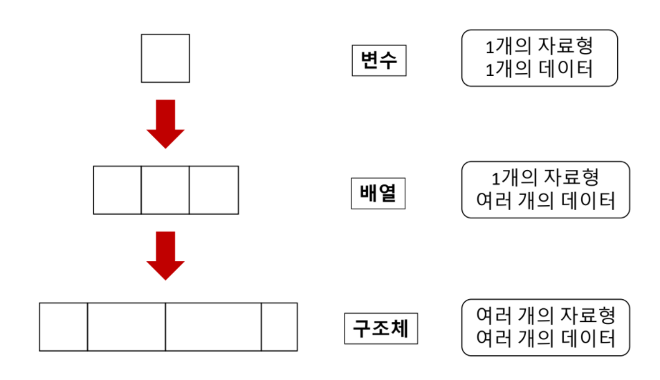 구조체 <- 여러 자료형을 여러개 넣을 수 있음