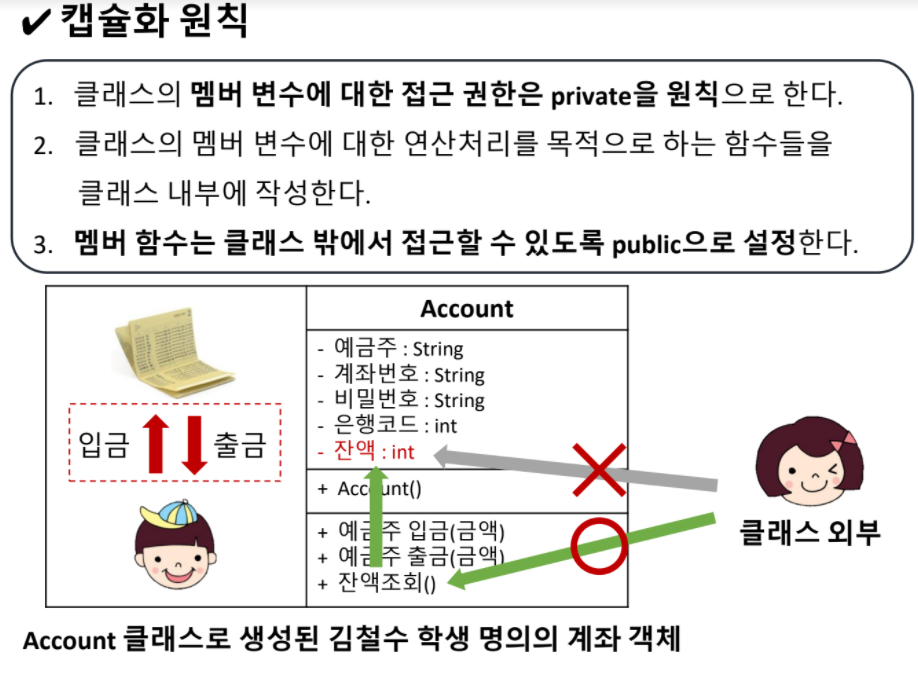 ※ 캡슐화는 밑에서 자세히 다뤄볼 예정이니 이해가 안 가더라도 참고하시면 됩니다.