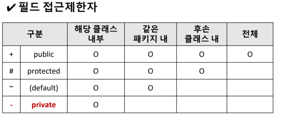필드 접근 제한자는 위와 같습니다.