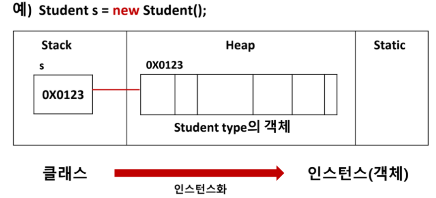 클래스에 정의된 내용대로 new 연산자를 통해 메모리 영역에 생성된 것입니다.