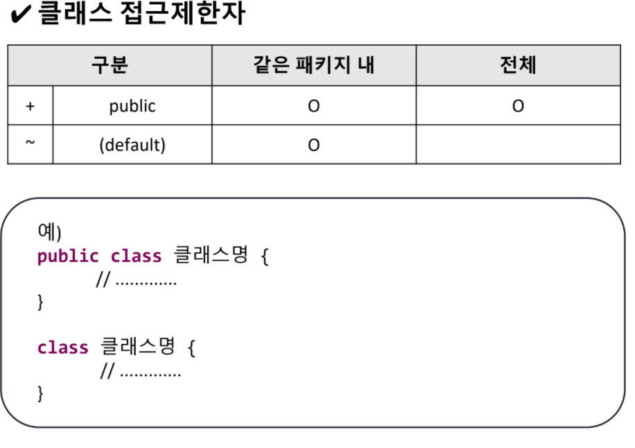 접근 제한자는 위에 클래스의 접근 제한자와 동일한 맥락으로,