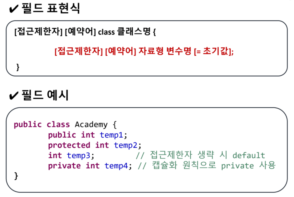 필드는 한마디로 클래스 내에 있는 변수와 같은데요.