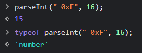 ▶ parseInt("숫자인 문자열" 혹은 숫자, 16)