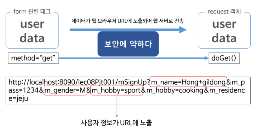 민감한 정보는 doGet 사용을 지양해야 합니다.