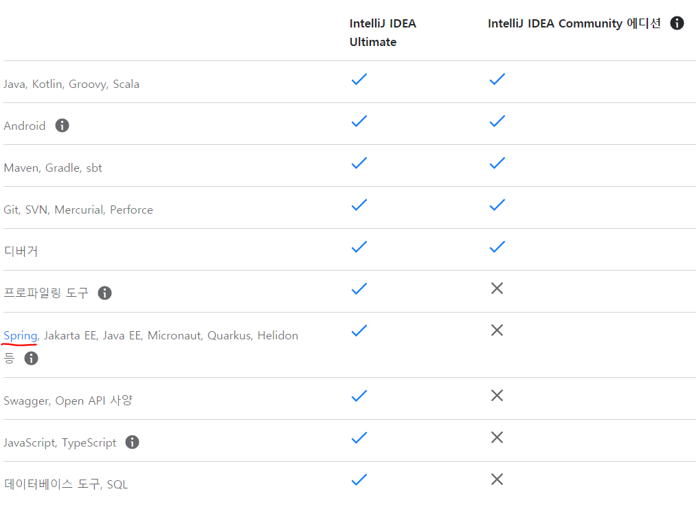 쉽게 말하면 Ultimate 버전은 유료버전, Community 버전은 무료 버전입니다.