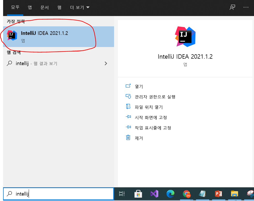 시작화면에서 검색한 후 실행을 눌러줍니다.