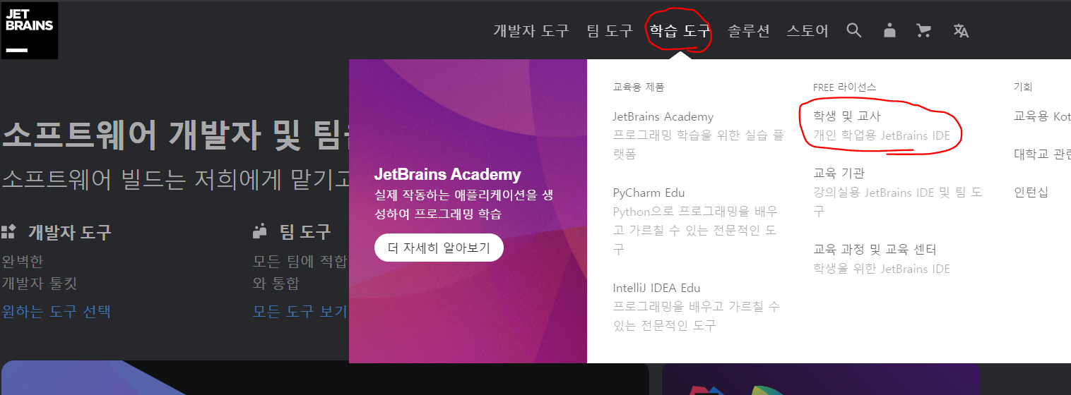 JetBrains 홈페이지로 가줍니다.