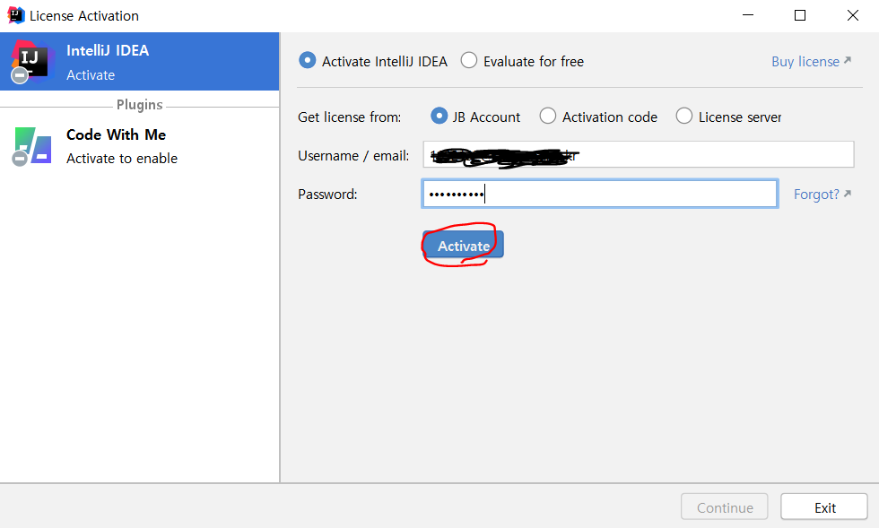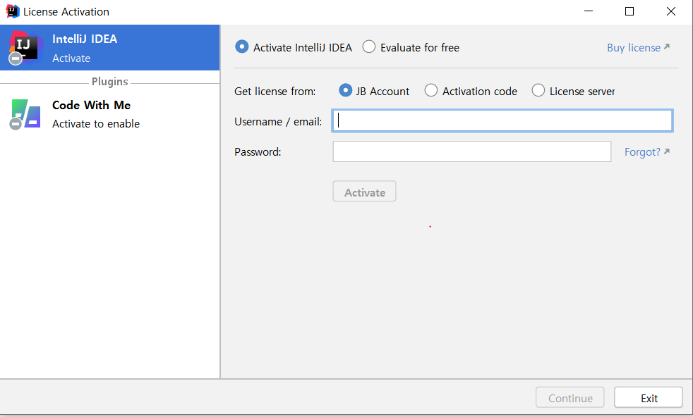 IntelliJ 사용을 위해선 계정이 필요합니다.
