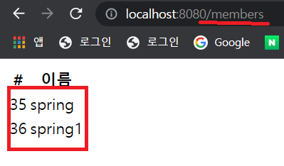 model에 members라는 속성명에 전체 회원정보를 담았다.
