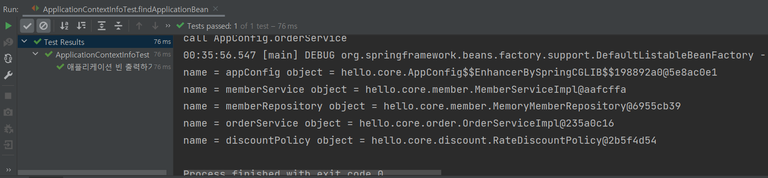 ○ 애플리케이션 빈 조회(내가 생성한 빈)