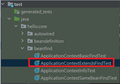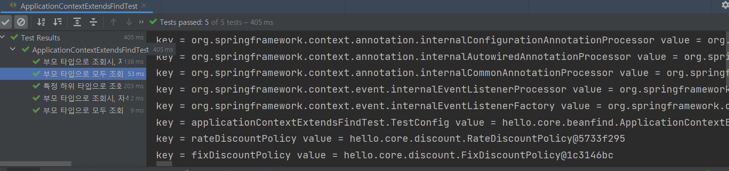 상속 관계의의 스프링 빈들을 조회하는 테스트 코드를 작성한다.
