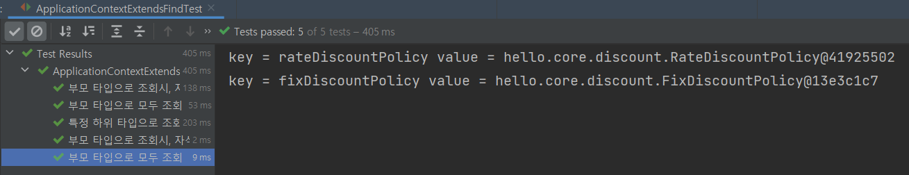 Map<String, DiscountPolicy> beansOfType = ac.getBeansOfType(DiscountPolicy.class);